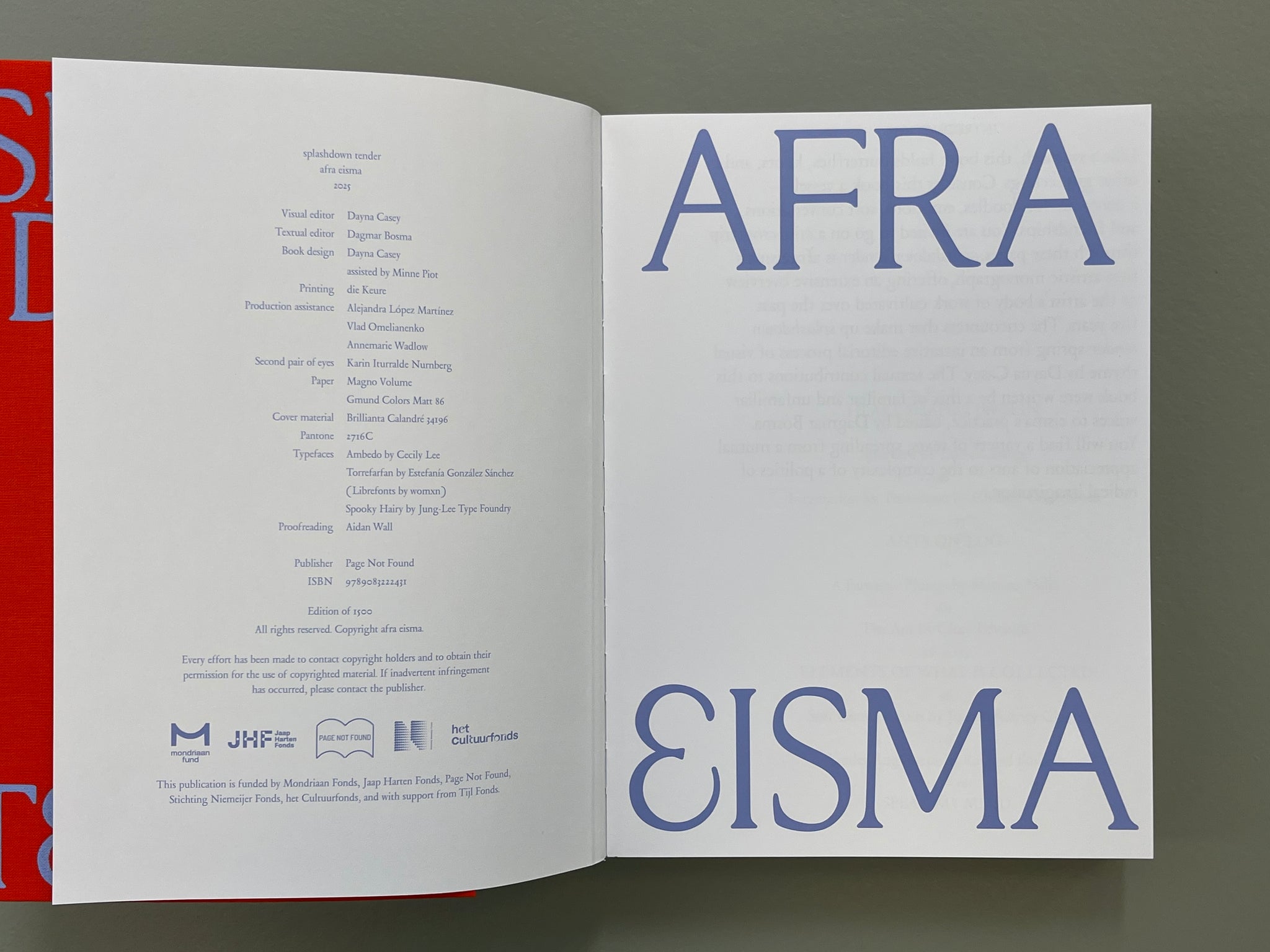Rather than a fixed retrospective, the monograph pubication splashdown tender by Dutch visual artist afra eisma (b. 1993, NL) unfolds like an exhibition itself: a constellation of works, notes, sketches, and contributions from friends, writers, and fellow artists. Readers are invited to wander through its pages without a prescribed route, encountering tenderness as a form of knowledge and a mode of assembly.