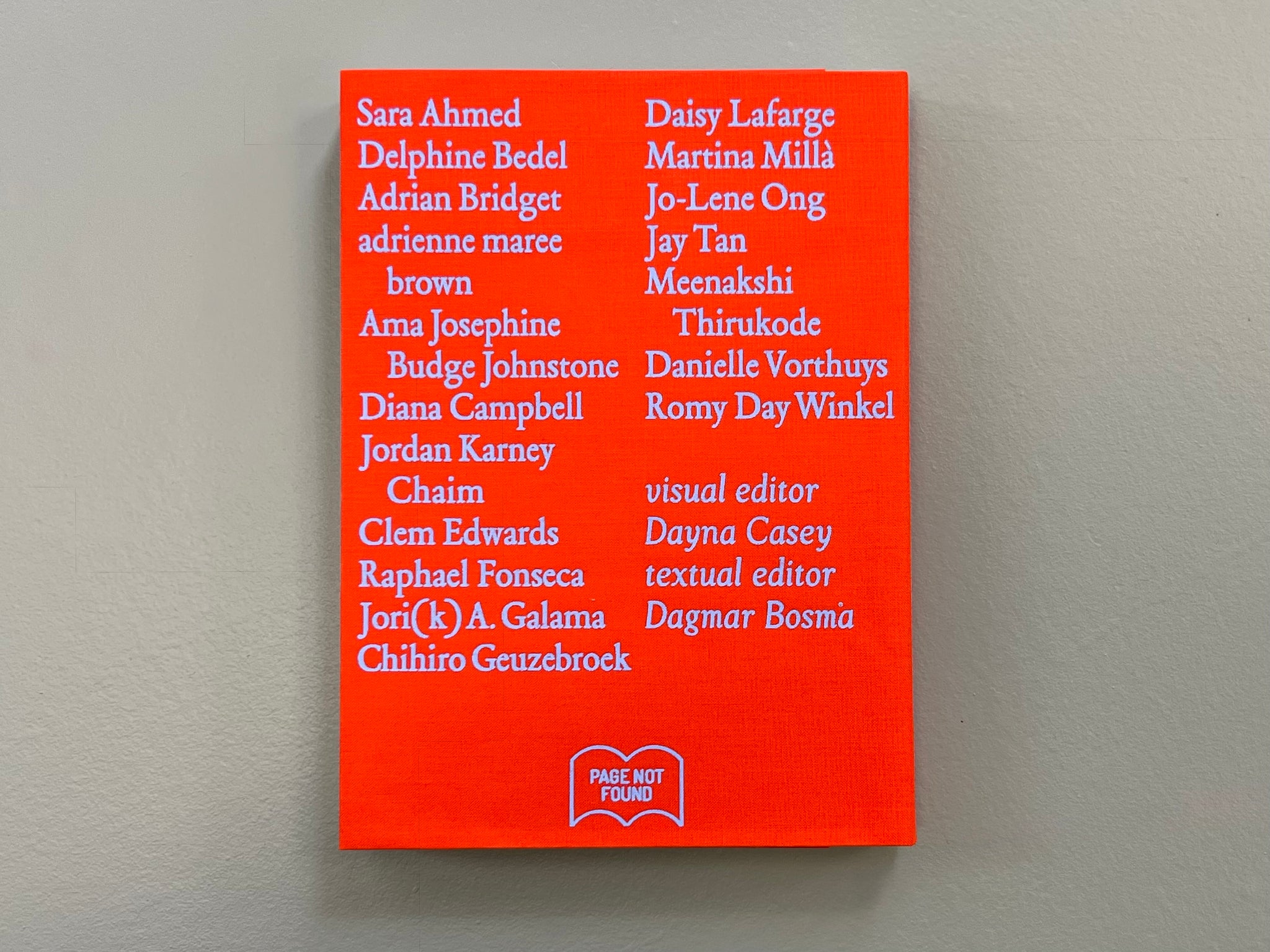 With contributions by Sara Ahmed, Delphine Bedel, Adrian Bridget, Ama Josephine Budge Johnstone, Diana Campbell, Jordan Karney Chaim, Clem Edwards, Raphael Fonseca, Jori(k) A. Galama, Chihiro Geuzebroek, Daisy Lafarge, adrienne maree brown, Martina Milla, Jo-Lene Ong, Jay Tan, Meenakshi Thirukode, Danielle Vorthuys, and Romy Day Winkel. Edited by Dagmar Bosma.